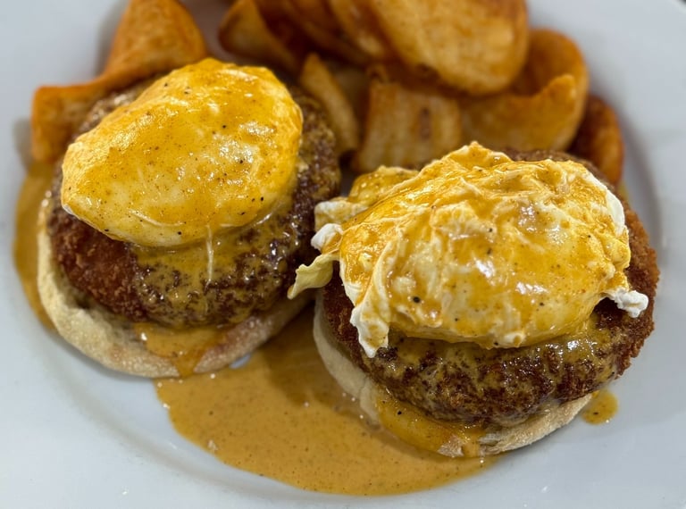 Crab cakes on an English muffin, poached eggs with Freshly made hollandaise sauces...$17.99